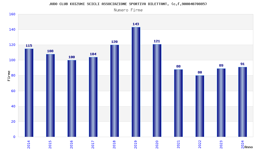 | Anno | Firme | Importi | Media | Naz. | Reg. | Prov. | Comu. |