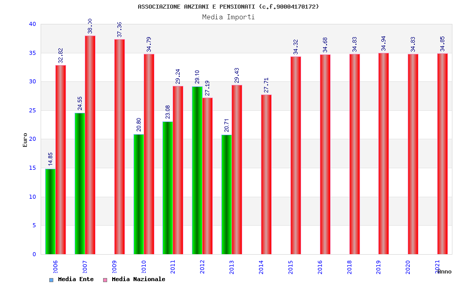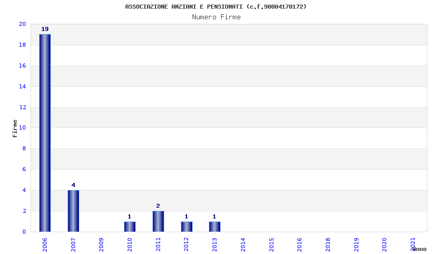 | Anno | Firme | Importi | Media | Naz. | Reg. | Prov. | Comu. |