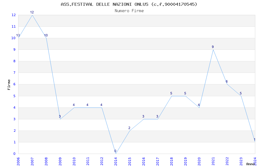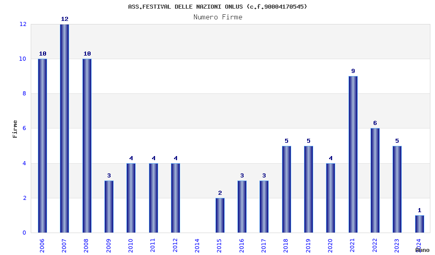 | Anno | Firme | Importi | Media | Naz. | Reg. | Prov. | Comu. |