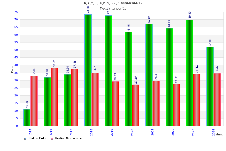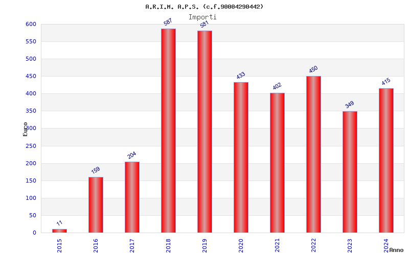| Anno | Firme | Importi | Media | Naz. | Reg. | Prov. | Comu. |