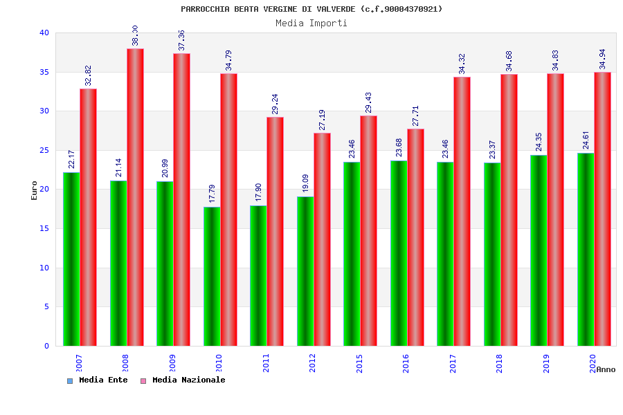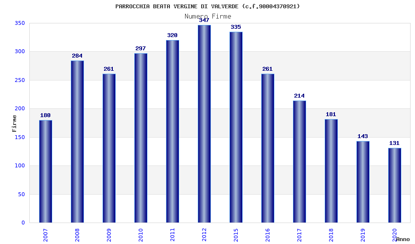 | Anno | Firme | Importi | Media | Naz. | Reg. | Prov. | Comu. |