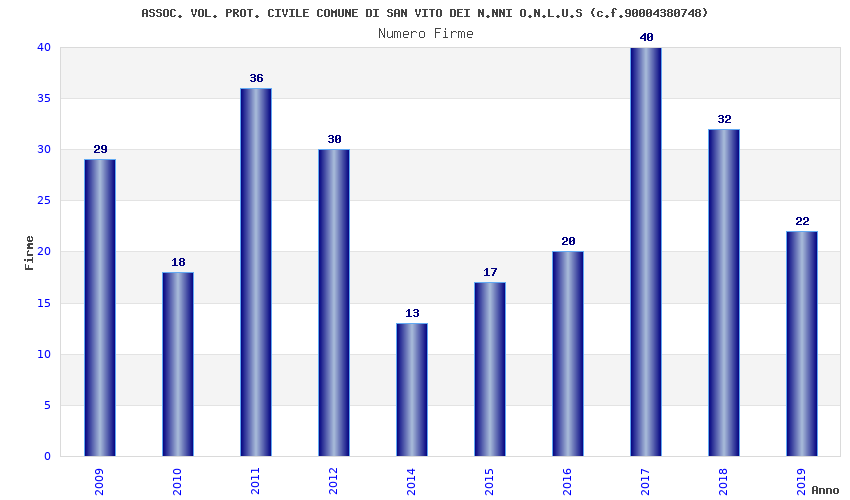 | 2017 | 40 | 771,60 | 19,29 | 38.290 | 1.818 | 164 | 3 |