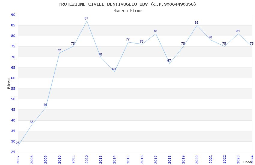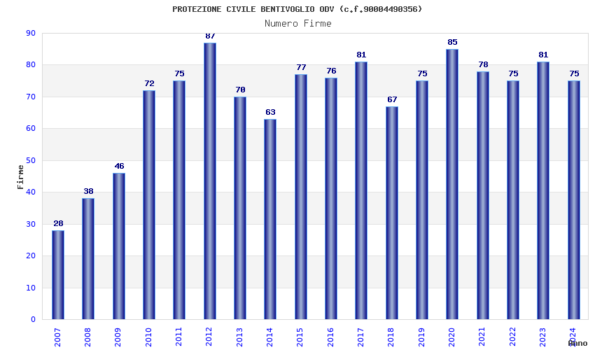 | 2024 | 75 | 2.145,15 | 28,60 | 22.832 | 1.985 | 246 | 3 |