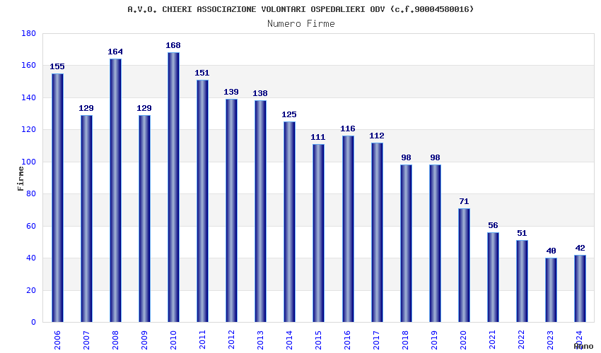 | Anno | Firme | Importi | Media | Naz. | Reg. | Prov. | Comu. |