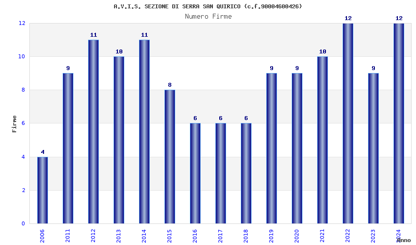 | Anno | Firme | Importi | Media | Naz. | Reg. | Prov. | Comu. |