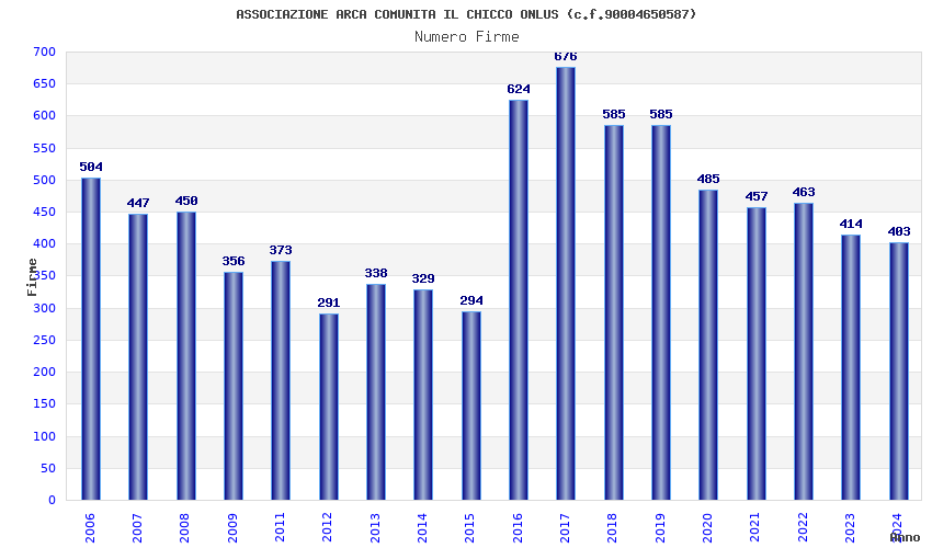 | Anno | Firme | Importi | Media | Naz. | Reg. | Prov. | Comu. |