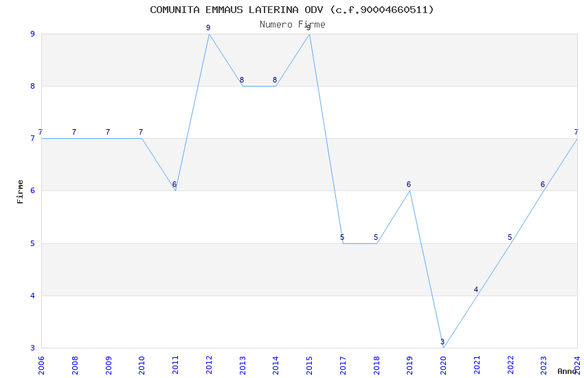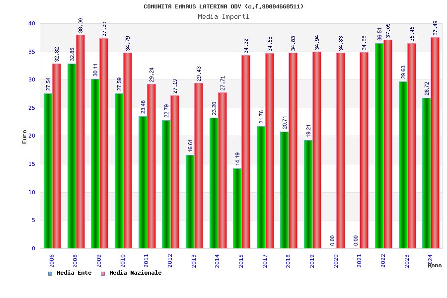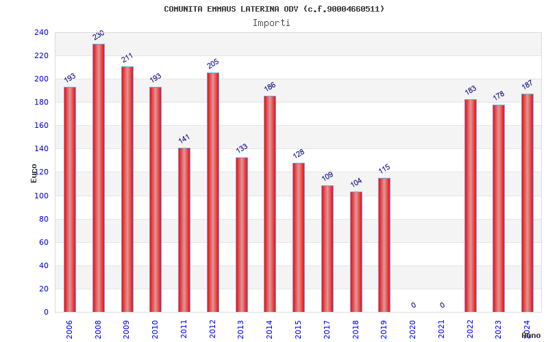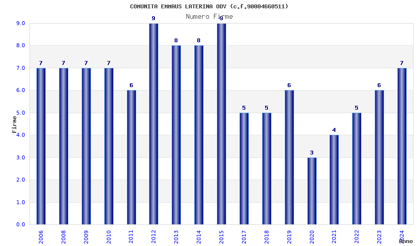 | Anno | Firme | Importi | Media | Naz. | Reg. | Prov. | Comu. |