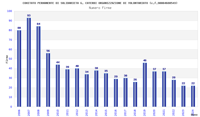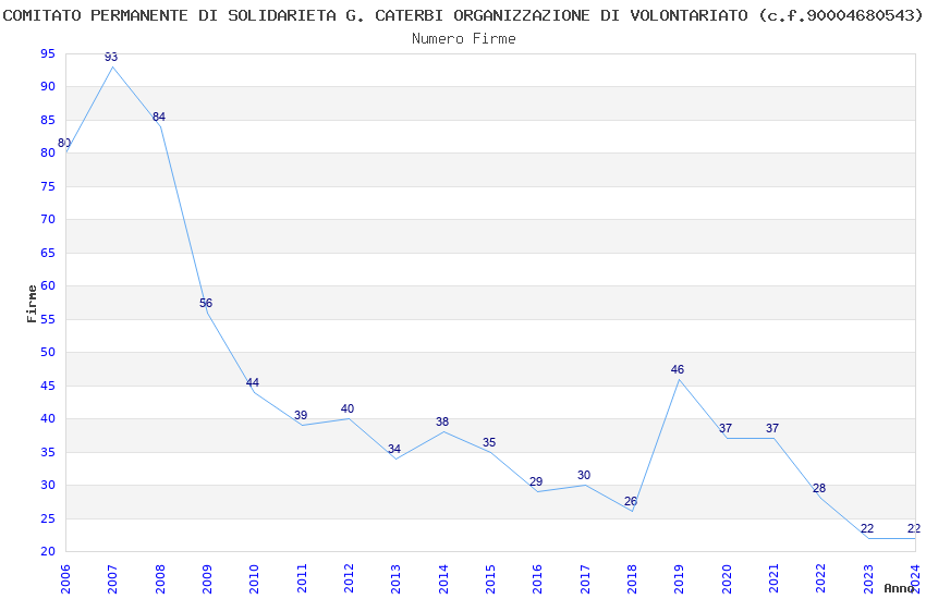 | Anno | Firme | Importi | Media | Naz. | Reg. | Prov. | Comu. |