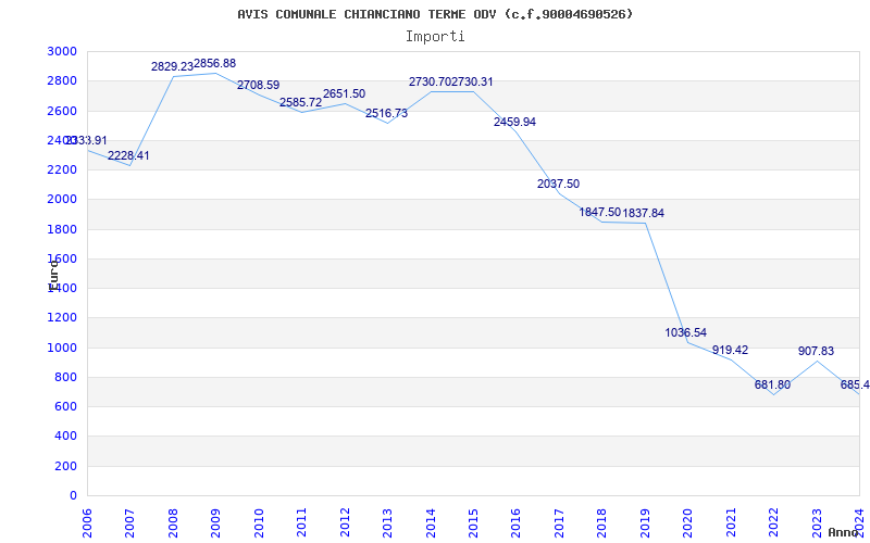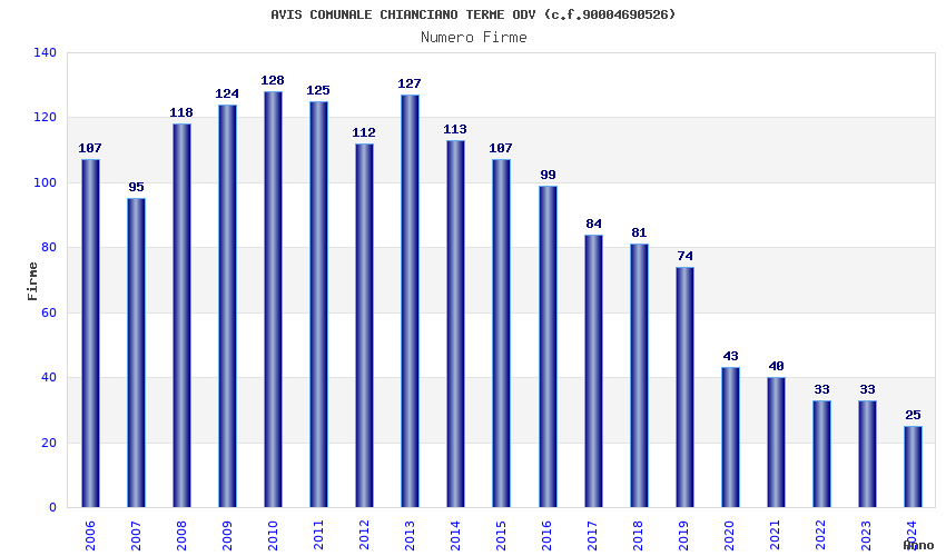 | Anno | Firme | Importi | Media | Naz. | Reg. | Prov. | Comu. |