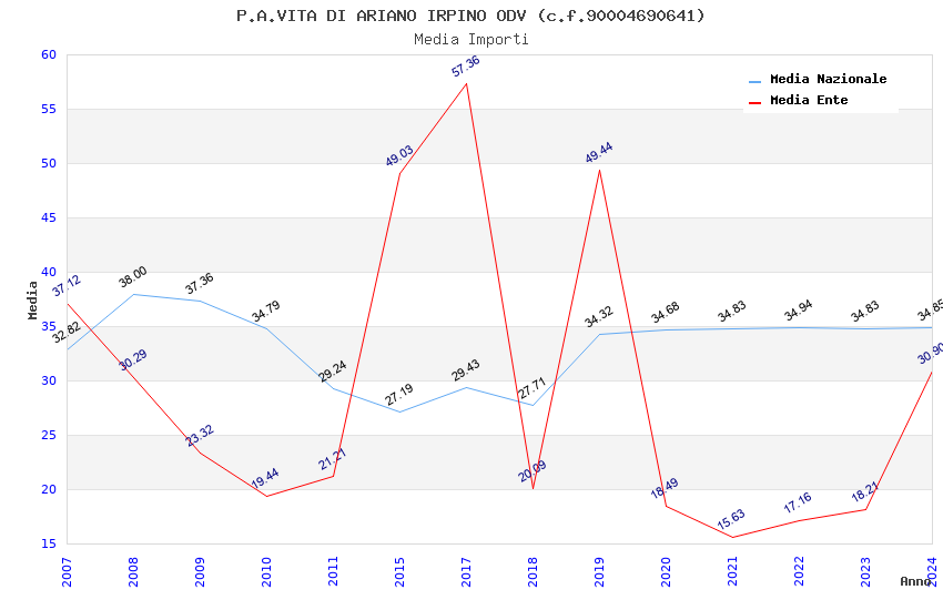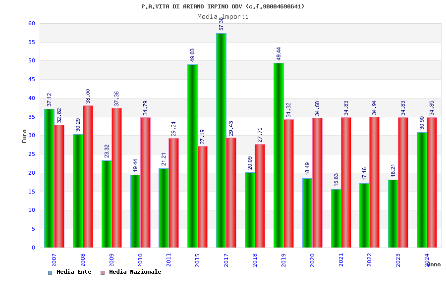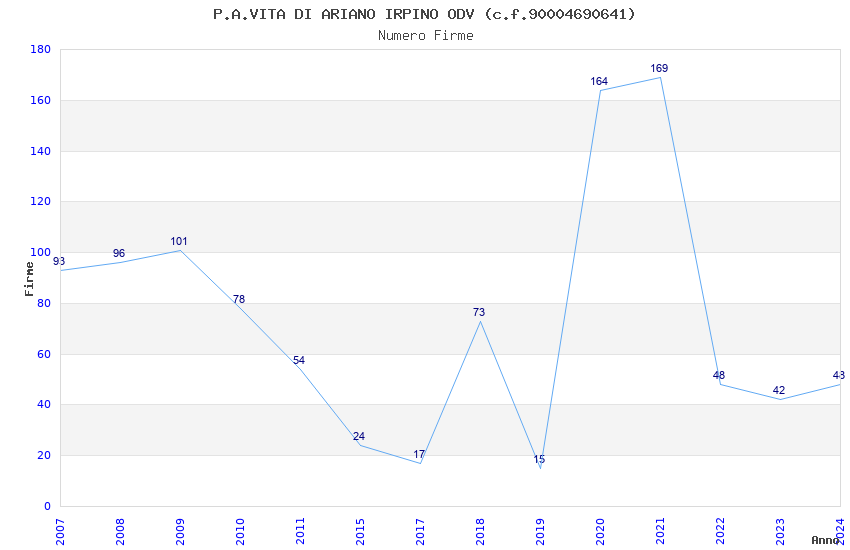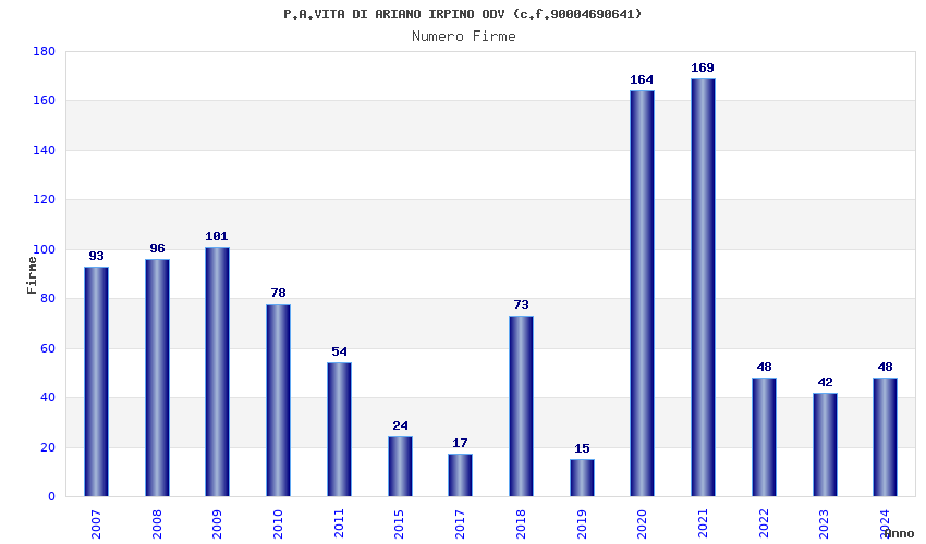 | Anno | Firme | Importi | Media | Naz. | Reg. | Prov. | Comu. |