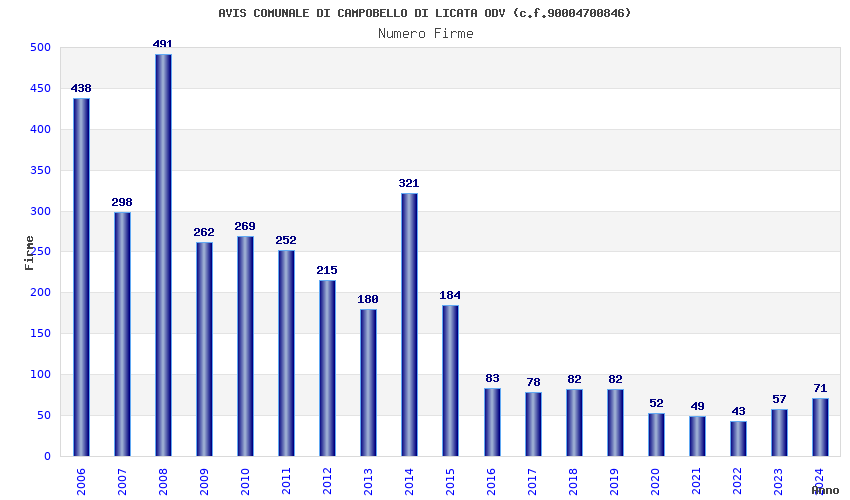 | Anno | Firme | Importi | Media | Naz. | Reg. | Prov. | Comu. |