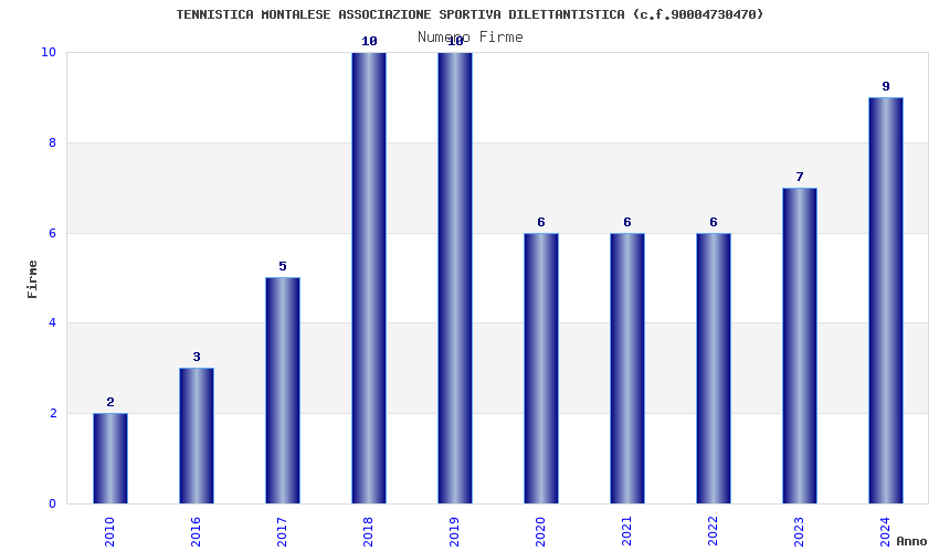 | Anno | Firme | Importi | Media | Naz. | Reg. | Prov. | Comu. |