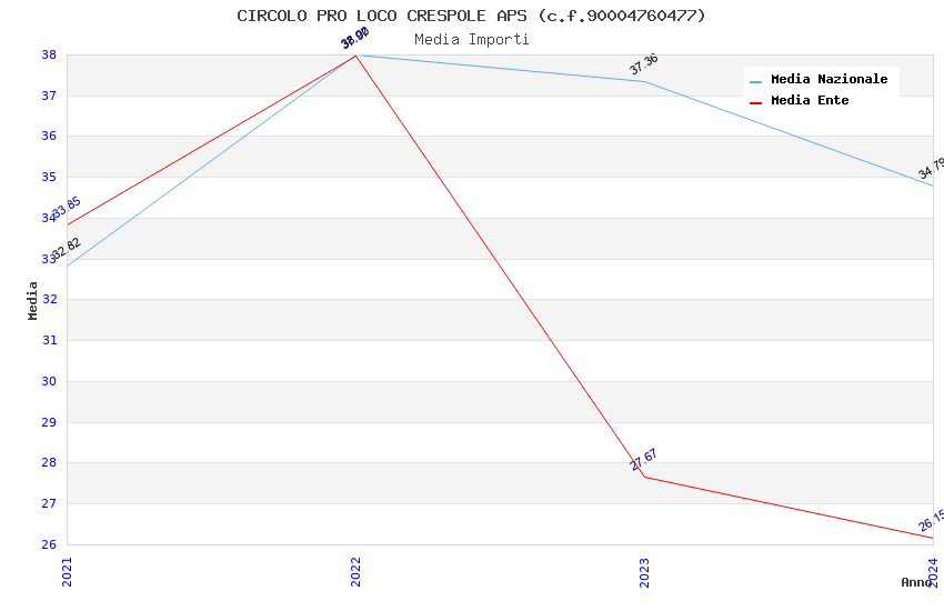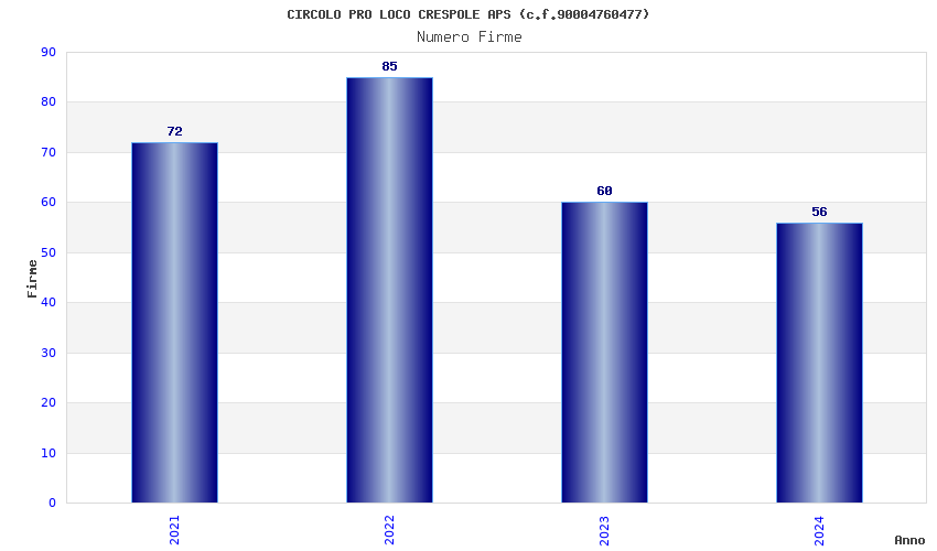 | Anno | Firme | Importi | Media | Naz. | Reg. | Prov. | Comu. |