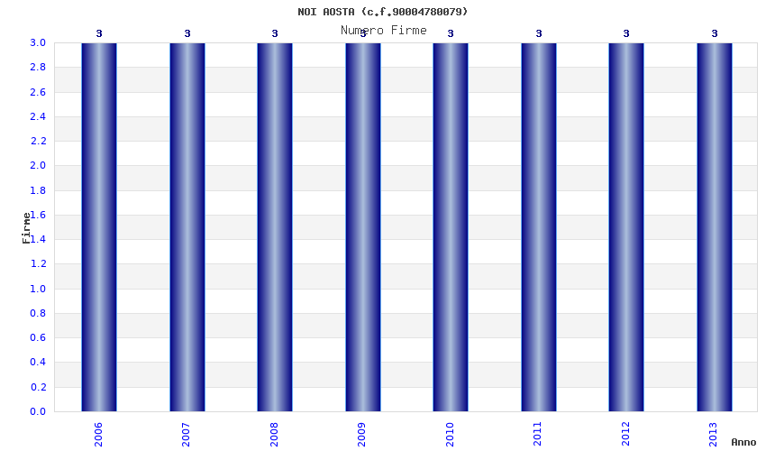 | Anno | Firme | Importi | Media | Naz. | Reg. | Prov. | Comu. |