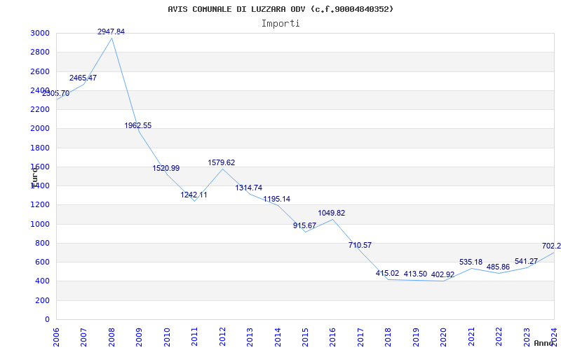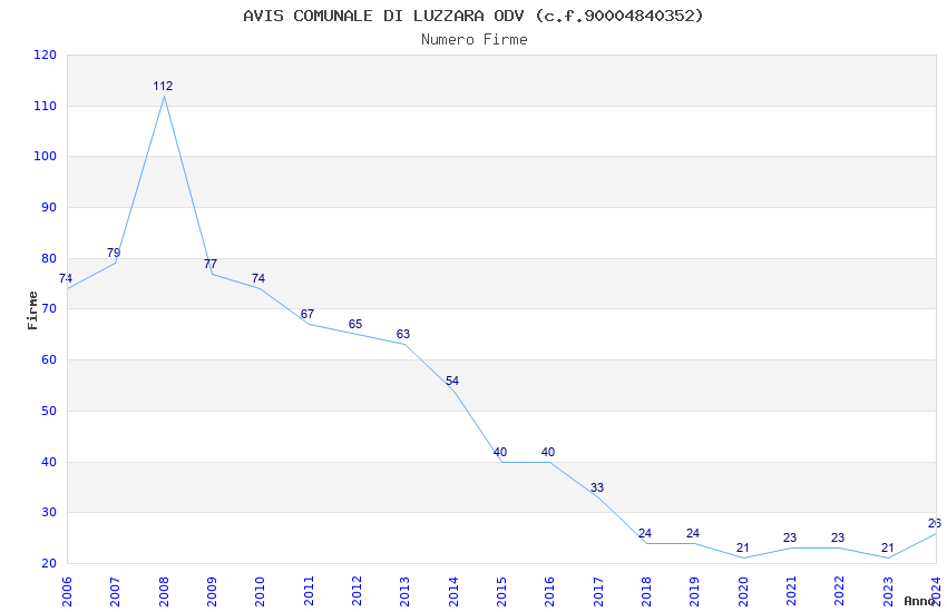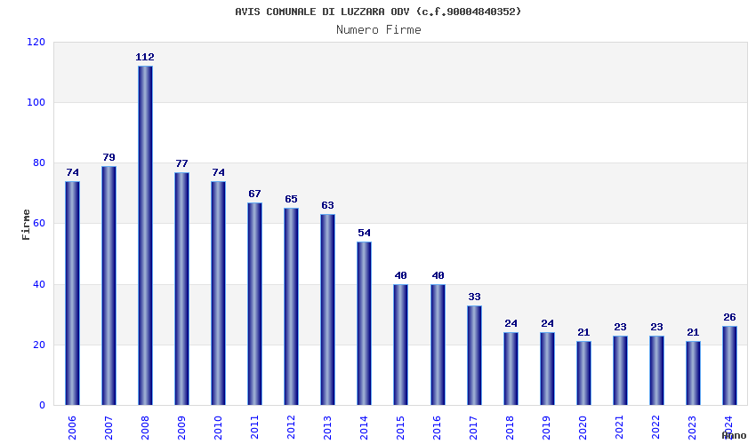 | Anno | Firme | Importi | Media | Naz. | Reg. | Prov. | Comu. |