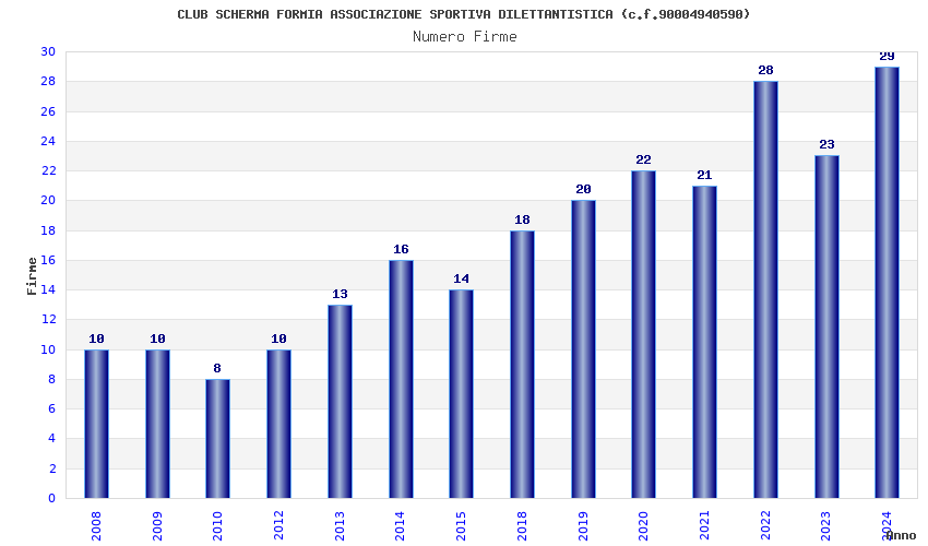 | Anno | Firme | Importi | Media | Naz. | Reg. | Prov. | Comu. |
