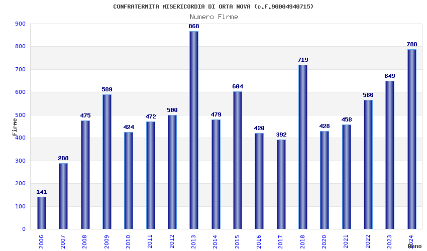 | Anno | Firme | Importi | Media | Naz. | Reg. | Prov. | Comu. |