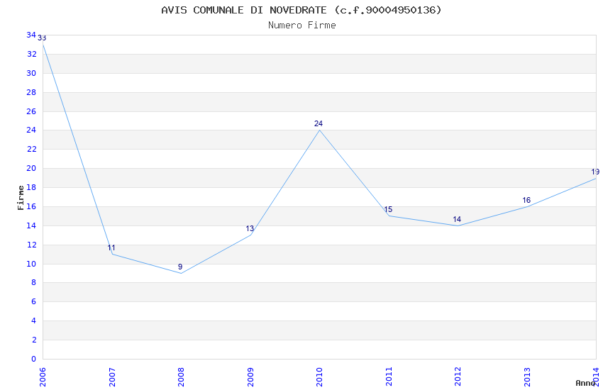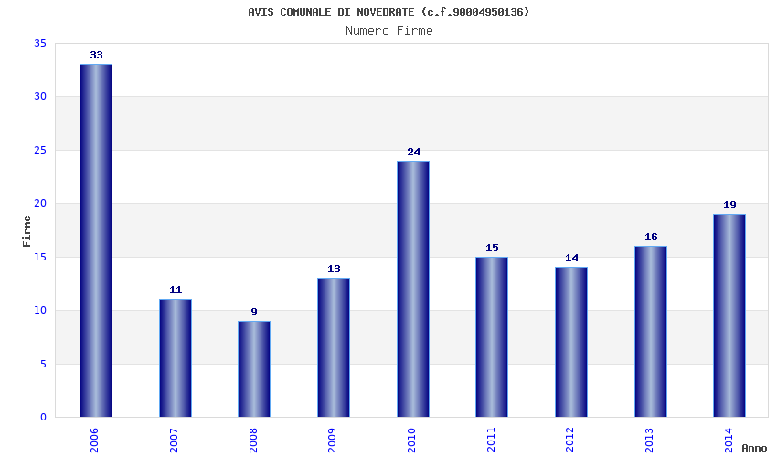 | Anno | Firme | Importi | Media | Naz. | Reg. | Prov. | Comu. |