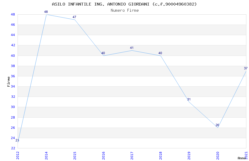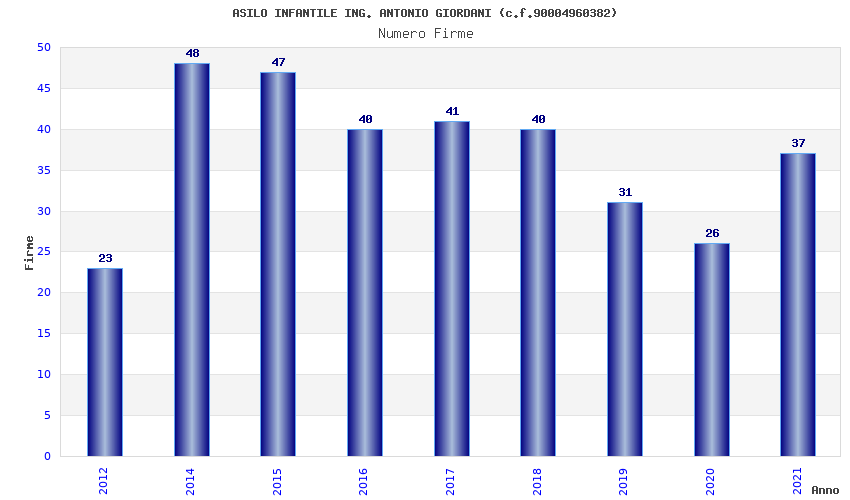 | Anno | Firme | Importi | Media | Naz. | Reg. | Prov. | Comu. |