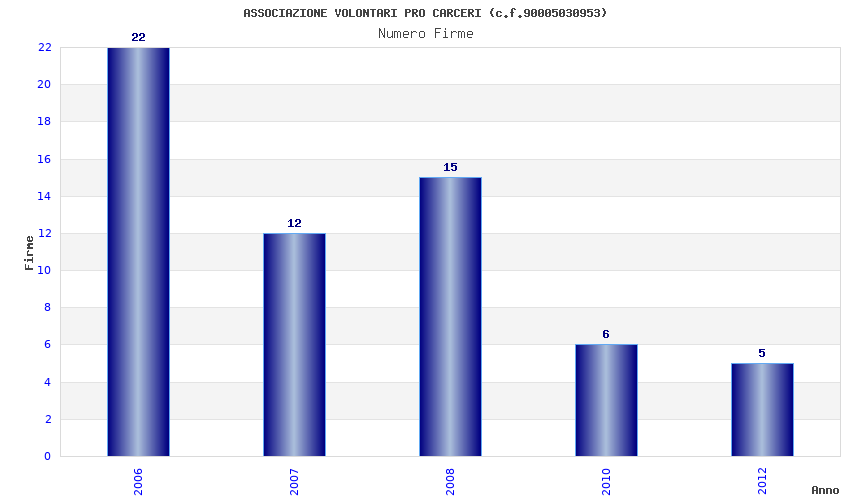 | Anno | Firme | Importi | Media | Naz. | Reg. | Prov. | Comu. |