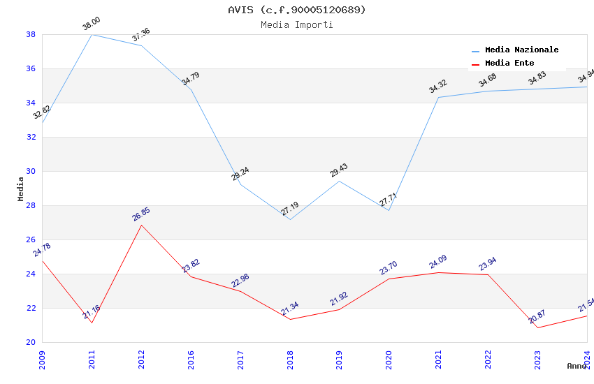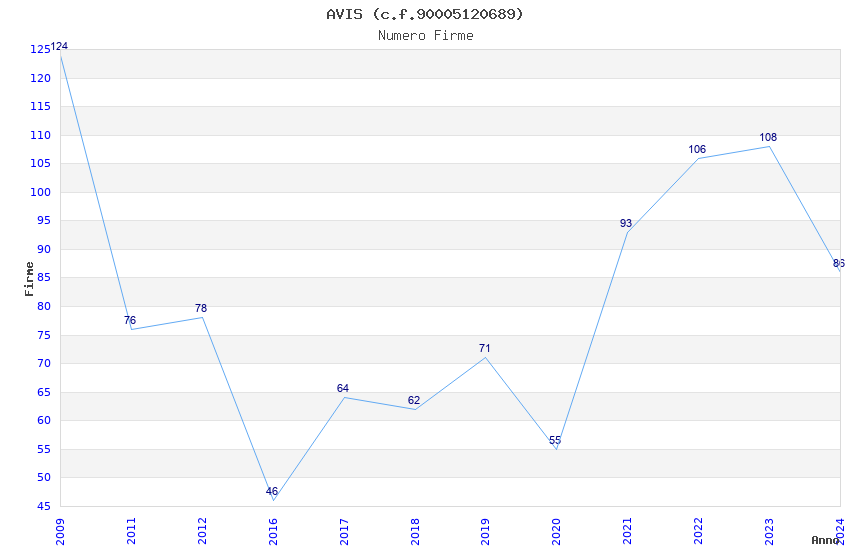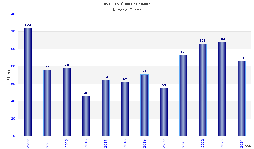 | Anno | Firme | Importi | Media | Naz. | Reg. | Prov. | Comu. |