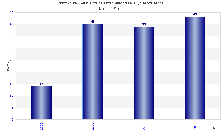 | Anno | Firme | Importi | Media | Naz. | Reg. | Prov. | Comu. |
