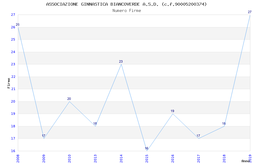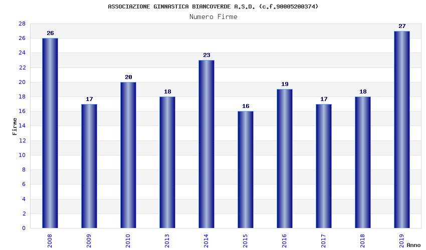 | Anno | Firme | Importi | Media | Naz. | Reg. | Prov. | Comu. |
