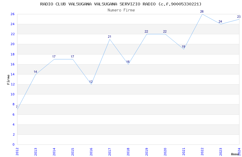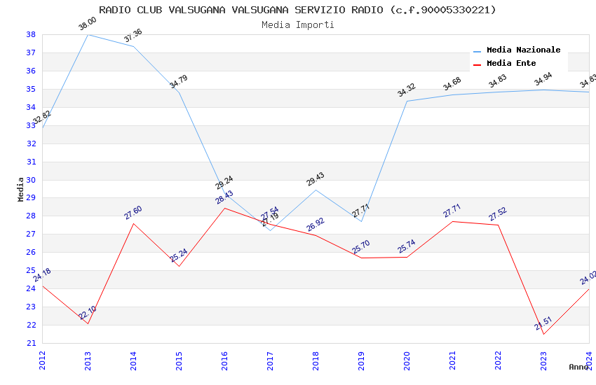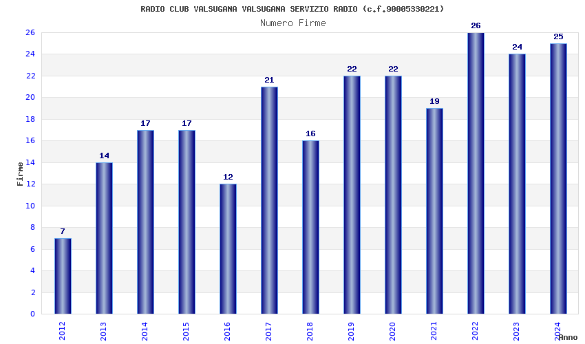 | Anno | Firme | Importi | Media | Naz. | Reg. | Prov. | Comu. |