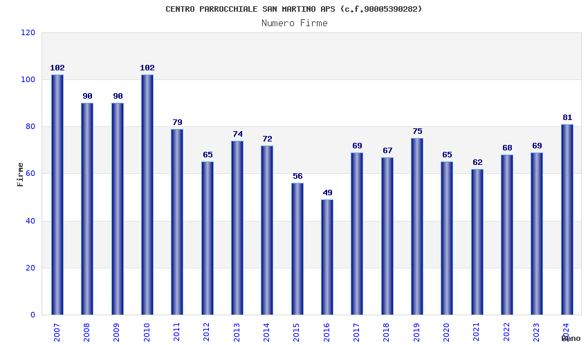 | Anno | Firme | Importi | Media | Naz. | Reg. | Prov. | Comu. |
