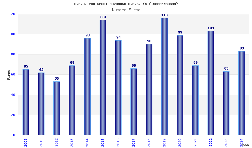 | 2019 | 116 | 2.701,84 | 23,29 | 19.276 | 1.145 | 89 | 3 |