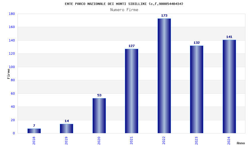 | Anno | Firme | Importi | Media | Naz. | Reg. | Prov. | Comu. |