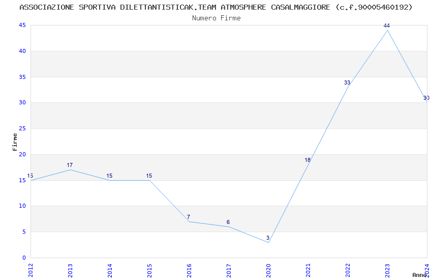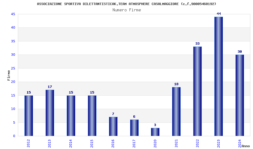 | 2023 | 44 | 1.373,57 | 31,22 | 30.347 | 2.661 | 338 | 5 |