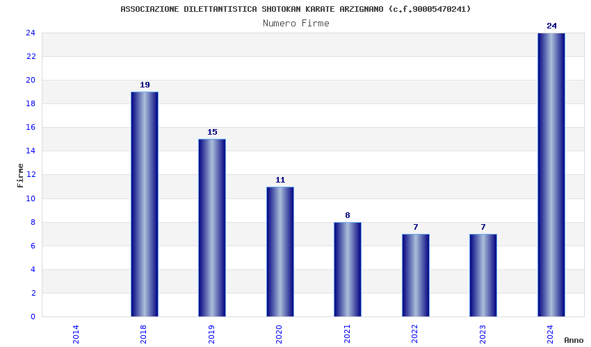 | Anno | Firme | Importi | Media | Naz. | Reg. | Prov. | Comu. |