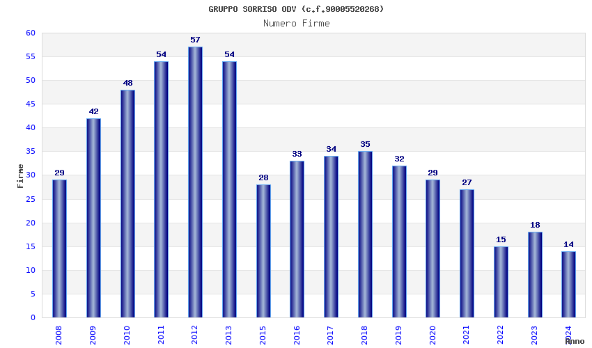 | Anno | Firme | Importi | Media | Naz. | Reg. | Prov. | Comu. |