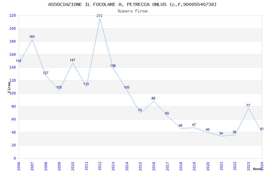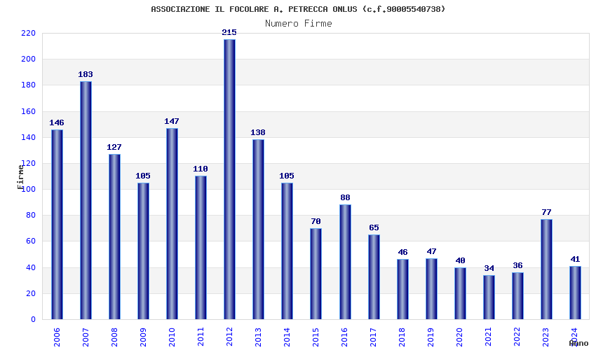| Anno | Firme | Importi | Media | Naz. | Reg. | Prov. | Comu. |