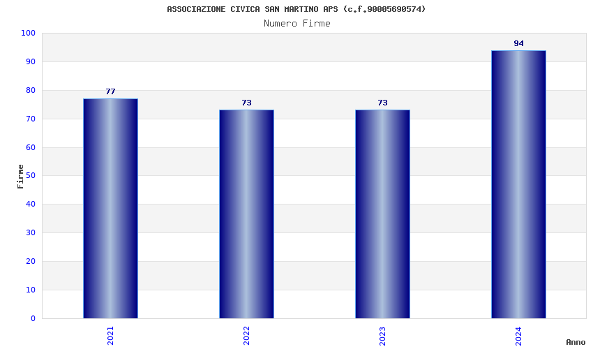| Anno | Firme | Importi | Media | Naz. | Reg. | Prov. | Comu. |
