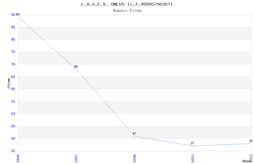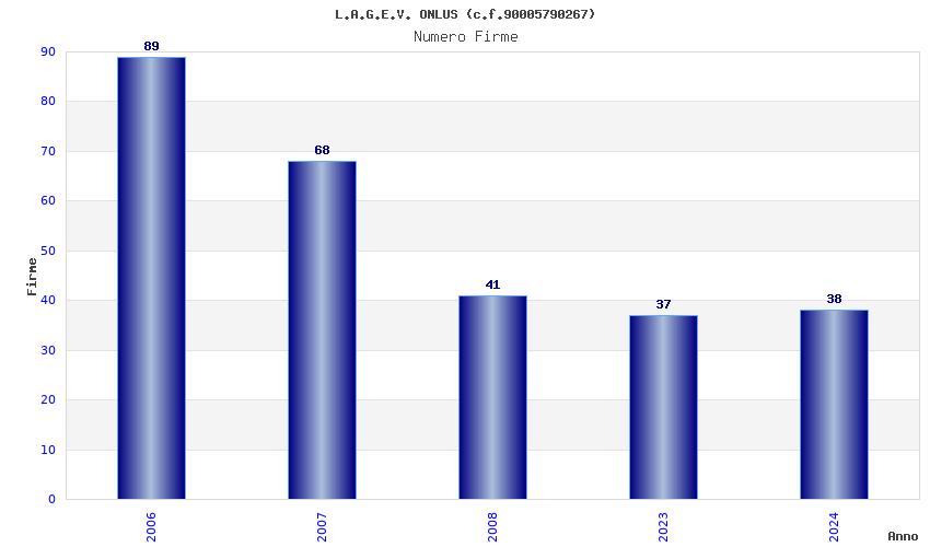 | Anno | Firme | Importi | Media | Naz. | Reg. | Prov. | Comu. |