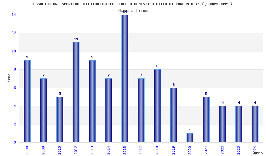 | Anno | Firme | Importi | Media | Naz. | Reg. | Prov. | Comu. |
