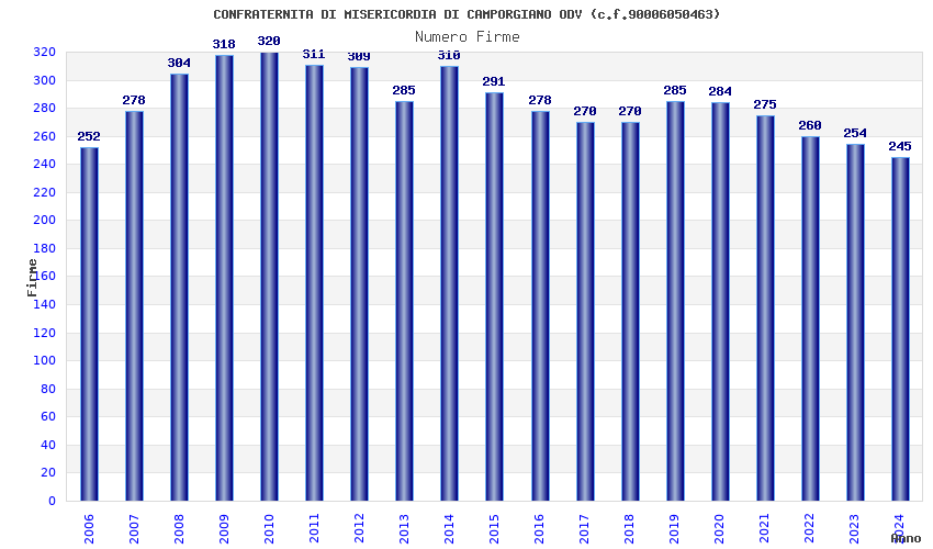 | 2010 | 320 | 4.964,84 | 15,52 | 8.348 | 541 | 51 | 1 |