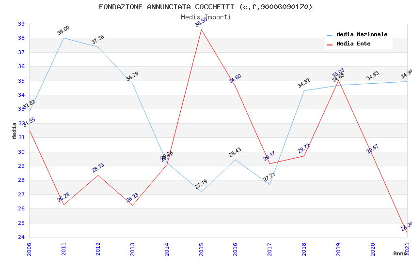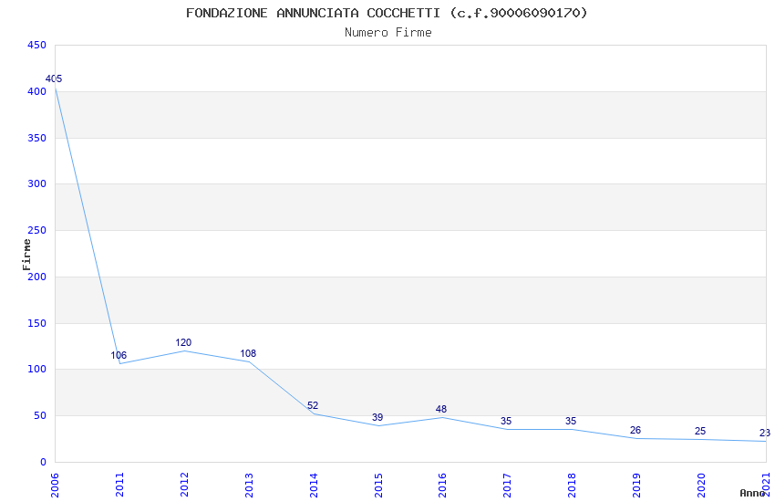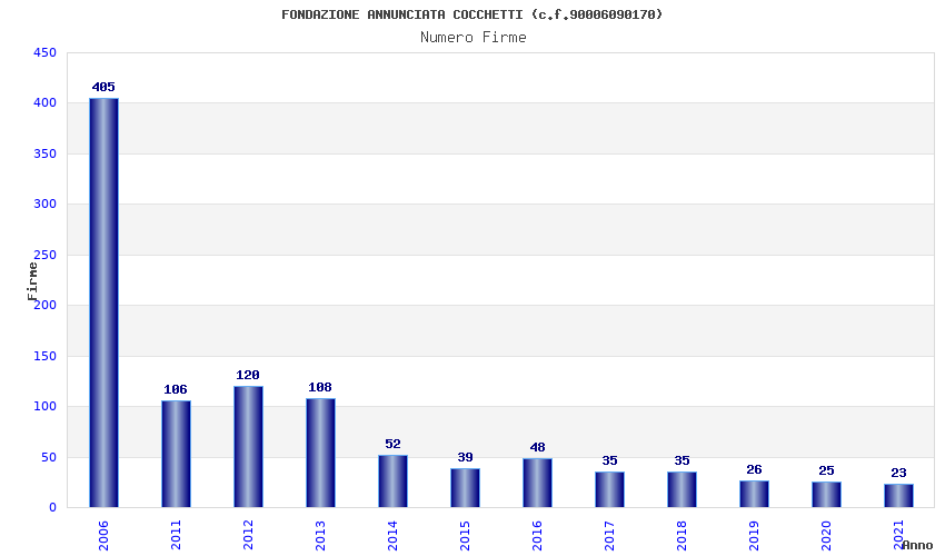 | Anno | Firme | Importi | Media | Naz. | Reg. | Prov. | Comu. |