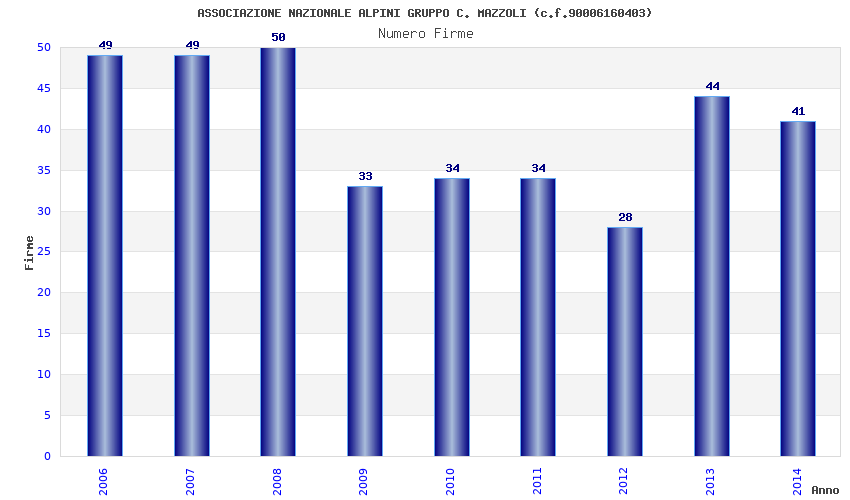 | Anno | Firme | Importi | Media | Naz. | Reg. | Prov. | Comu. |
