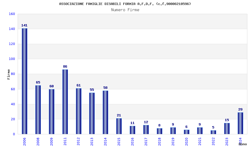 | Anno | Firme | Importi | Media | Naz. | Reg. | Prov. | Comu. |