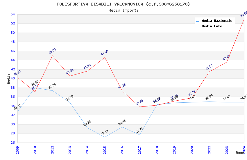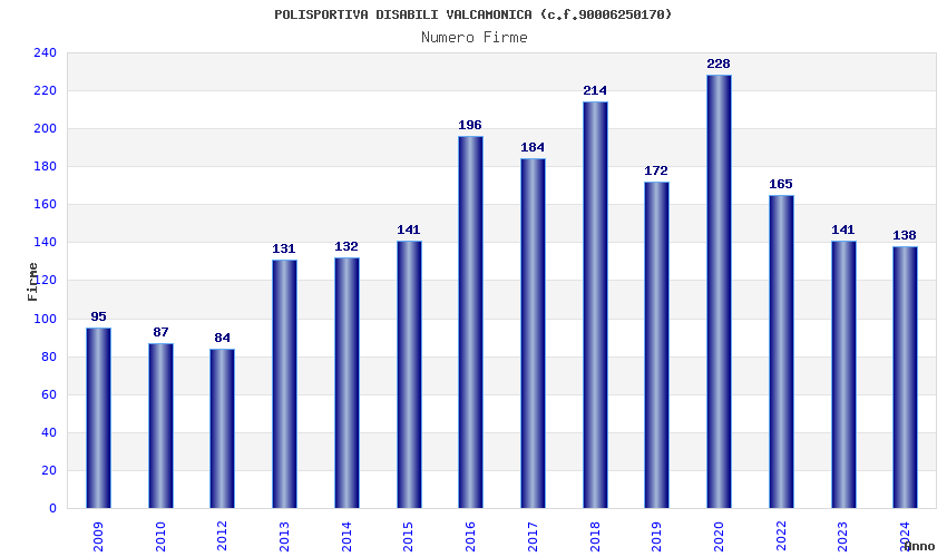 | Anno | Firme | Importi | Media | Naz. | Reg. | Prov. | Comu. |