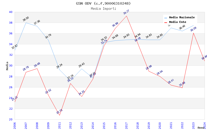 | Anno | Firme | Importi | Media | Naz. | Reg. | Prov. | Comu. |