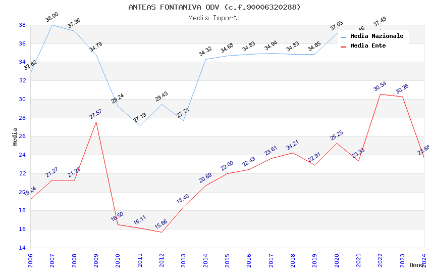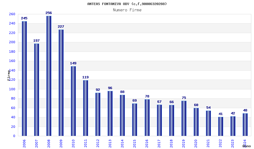| Anno | Firme | Importi | Media | Naz. | Reg. | Prov. | Comu. |