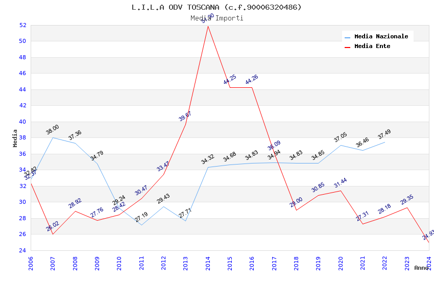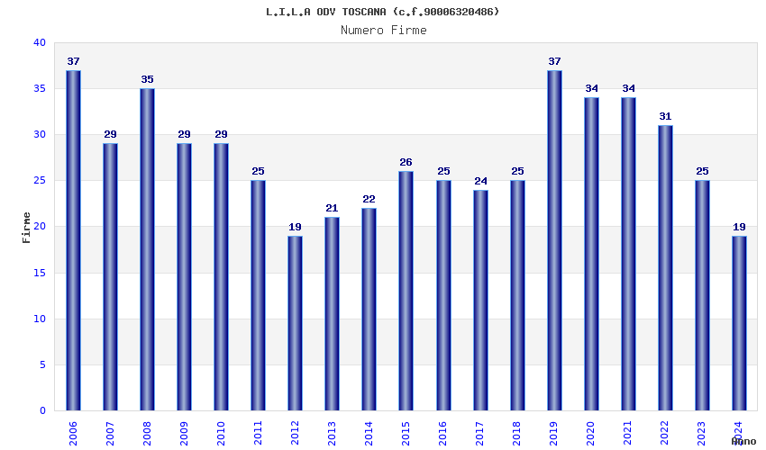 | Anno | Firme | Importi | Media | Naz. | Reg. | Prov. | Comu. |