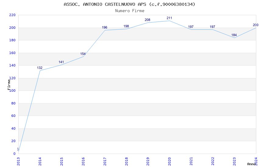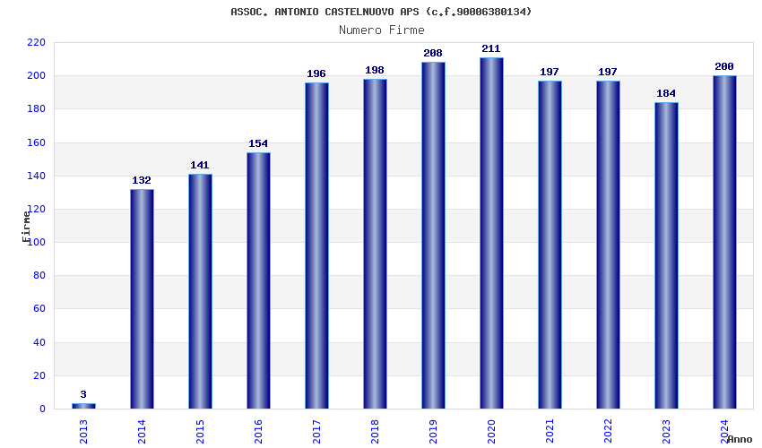 | Anno | Firme | Importi | Media | Naz. | Reg. | Prov. | Comu. |