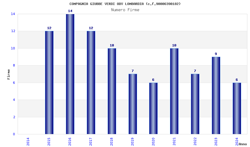 | Anno | Firme | Importi | Media | Naz. | Reg. | Prov. | Comu. |