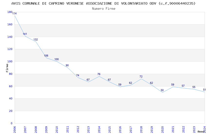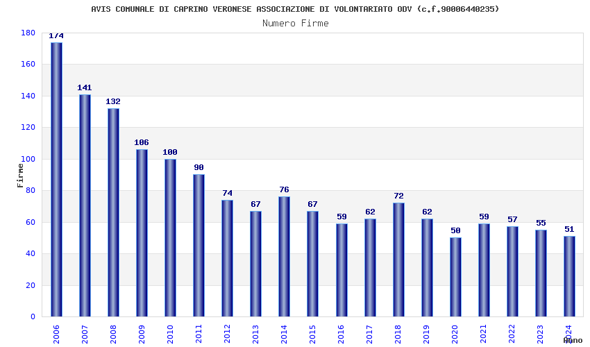 | Anno | Firme | Importi | Media | Naz. | Reg. | Prov. | Comu. |