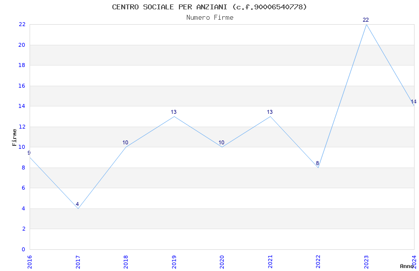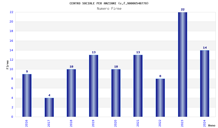 | Anno | Firme | Importi | Media | Naz. | Reg. | Prov. | Comu. |